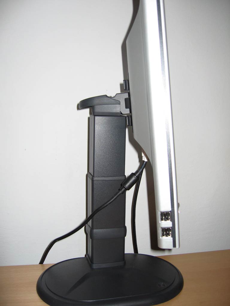 Skærmen har både en DVI og VGA indgang. Begge sidder på bagsiden og vender nedad, som blandt andet er nødvendigt for at montere skærmen på vægen. Det er nemlig muligt at skrue foden af og købe et vægophæng.