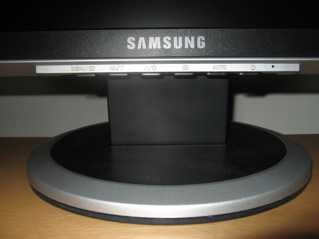 Umiddelbart minder foden om dem man ser på andre Samsung modeller, hvor der er integreret en drejeskive nedenunder - men ved nærmere eftersyn finder man ud af, at der intet overraskende findes under foden.OSD er overskueligt og pænt opbygget. Samsung har lidt farver i opbygningen af menuen, dog uden at det bliver for meget. Det er godt opbygget og tilbyder en del flere funktioner end f.eks. ViewSonics VX924 og VX922, BenQs FP71GX og Acer AL1951Bs.