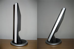 Under skærmens ramme finder man 6 knapper til styring af OSD mm. De sidder forholdsvis skjult og skal aktiveres ved tryk nedefra.Bagsiden af skærmens er sort og simpel. Man kan tage en del af den af, hvorefter man kan montere input (DVI eller D-SUB) og strømstik. Når stikkene er monteret korrekt kan bagsiden let sættes på igen og det fungerer udmærket.