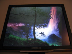 Homogeniteten af lys fra baggrundsbelysningen er derimod ikke helt god. Der slipper lys igennem i kanterne og der er lidt ærgerligt. Jeg diskuterede kort forskellige former for uregelmæssigheder i testen af ViewSonic VX922 og beskrev, hvordan lys ved rammens kant er noget af de mest irriterende og markante i almindelig anvendelse af skærmen.