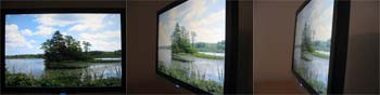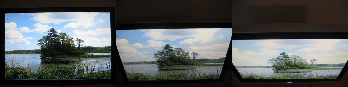 Betragtningsvinklerne er sædvanligvis gode på VA panelerne, og panelet i Belinea 102035W er ingen undtagelse. Der er plads til små forbedringer, men i praksis ser man kun ændringer fra rimelig store vinkler. Jeg har taget et billede af betragtningsvinklerne herunder: