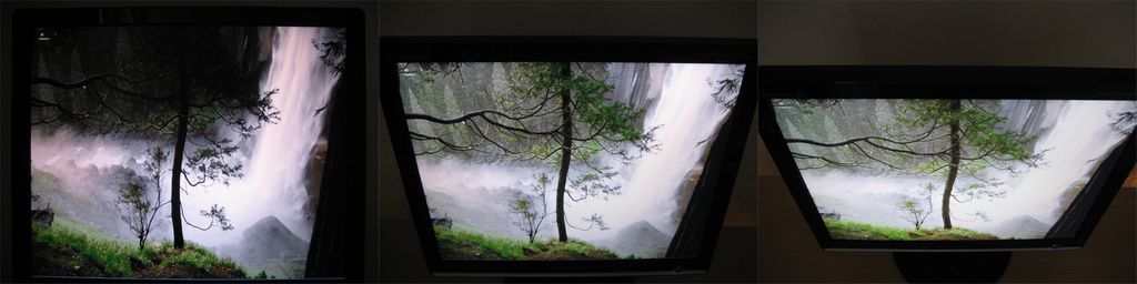 Det er almindeligt for TN paneler, og derved gamerskærme og prisbillige skærme, at betragtningsvinklerne er begrænsede. Man mister typisk en del kontrast ved at betragte billedet fra vinkler, ligesom flere farver skifter nuancering. Jeg har taget nogle billeder af betragtningsvinklerne herunder: