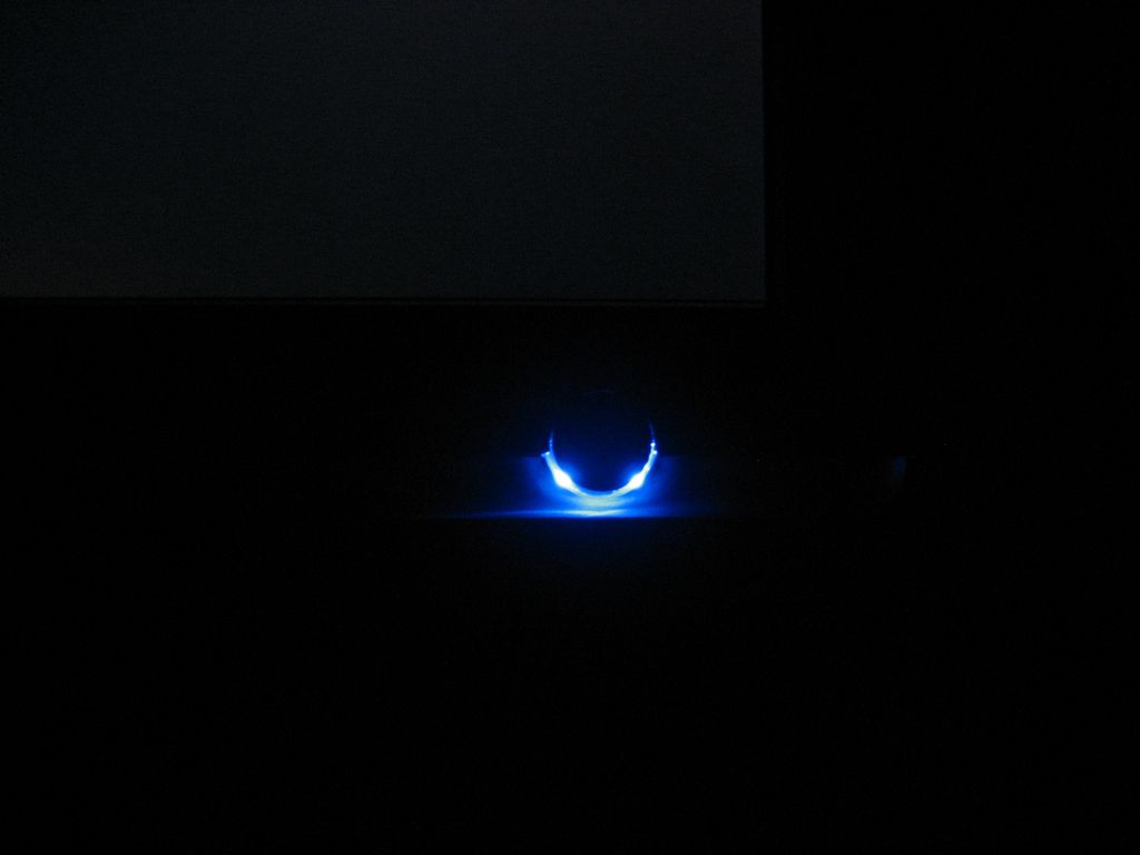 Homogeniteten af lyset på skærmen er også fin. Der slipper en smule mere lys ud nede i bunden af skærmen, men absolut intet kritisk og jeg fandt det aldrig generende i praktisk brug. Se billede herunder, hvor du også kan fornemme hvordan skærmen gengiver sort i et helt mørkelagt rum: