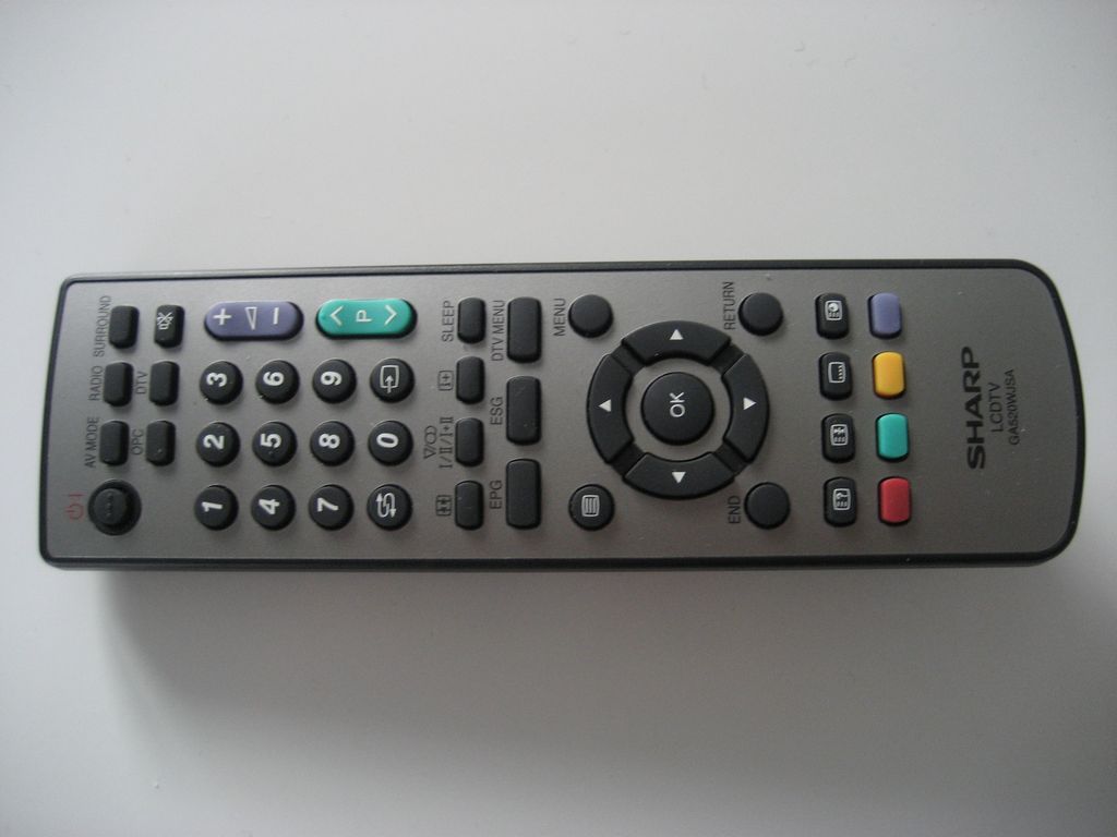 Fjernbetjeningen er ikke særlig køn. Efter at have haft 3 forskellige Sharp modeller til test nu, ses det tydeligt, at der ikke arbejdes meget på designet af denne – eller også har Sharp bare ikke flair for det.