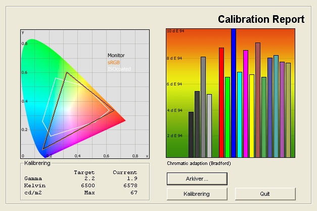 Jeg prøvede at indstille lidt på skærmen og tage en ny måling. Jeg snakker herefter også mere om den praktiske del af billedet.
