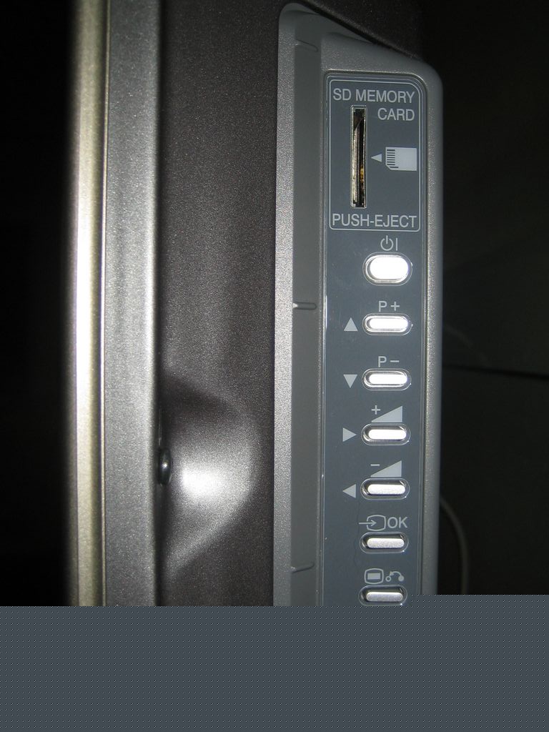 Skærmen har desuden mulighed for at læse billeder og film fra et SD memory kort, som isættes i skærmens højre side (fra seerpositionen). Det fungerer let og bekvemt.