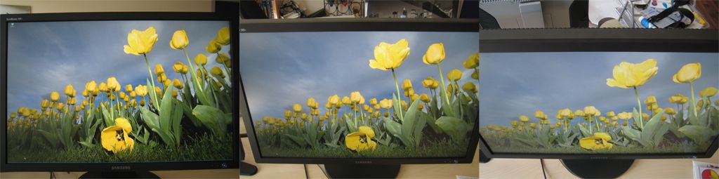 Betragtningsvinklerne er overordnet set gode, men har naturligvis samme karakteristika som andre S-PVA paneler. Der indebærer tab i farveintensitet, men primært i kontrasten. S-PVA panelerne er vel og mærke på et niveau, hvor langt størstedelen af brugerne – hvert fald for monitors – stilles tilfredse, men der er dog stadig noget vej op til S-IPS paneler, der betragtes som paneltypen med de bedste betragtningsvinkler.