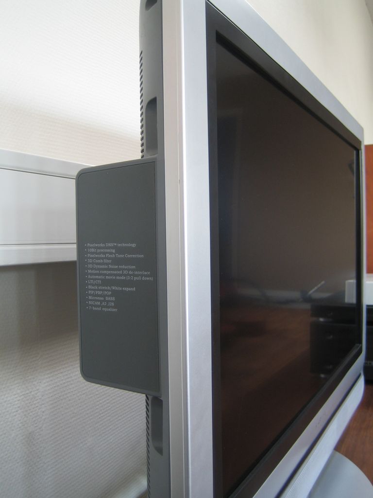 I venstre side er der en boks monteret, som sidder lidt uheldigt, når man betragter Tv’et fra siden.