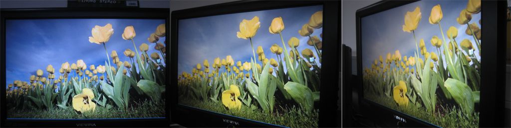 Det kan lade sig gøre at betragte skærmen ovenfra, men nedefra bliver farverne næsten komplementære, ligesom vi tit illustrerer på andre TN paneler.