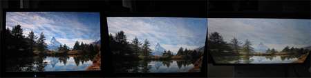 I disse størrelser får man et stort billedareal og det kan betyde, at man bemærker betragtningsvinklernes begrænsninger blot man kigger lige på billedet. Det er også synligt på BenQ V2400W, og f.eks. en mørkerød overflade tager sig forskelligt ud i bunden og toppen af panelet, fordi man kigger på de to områder fra forskellige vinkler. Betragtningsvinklerne er derfor i min mening også en af de største begrænsninger, når man køber de store skærme baseret på TN paneler.