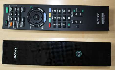 Det er en ny fjernbetjening fra Sony, som er ganske stor. For mig er den en smule nostalgisk og bringer tankerne tilbage på nogle af Sonys ældre fjernbetjeninger. Alligevel har den et mere moderne look, men dog også alt for mange knapper.