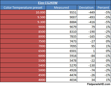 Jeg gik videre til at kontrollere farvetemperaturen og hvor præcise de forskellige skridt er CG243W: