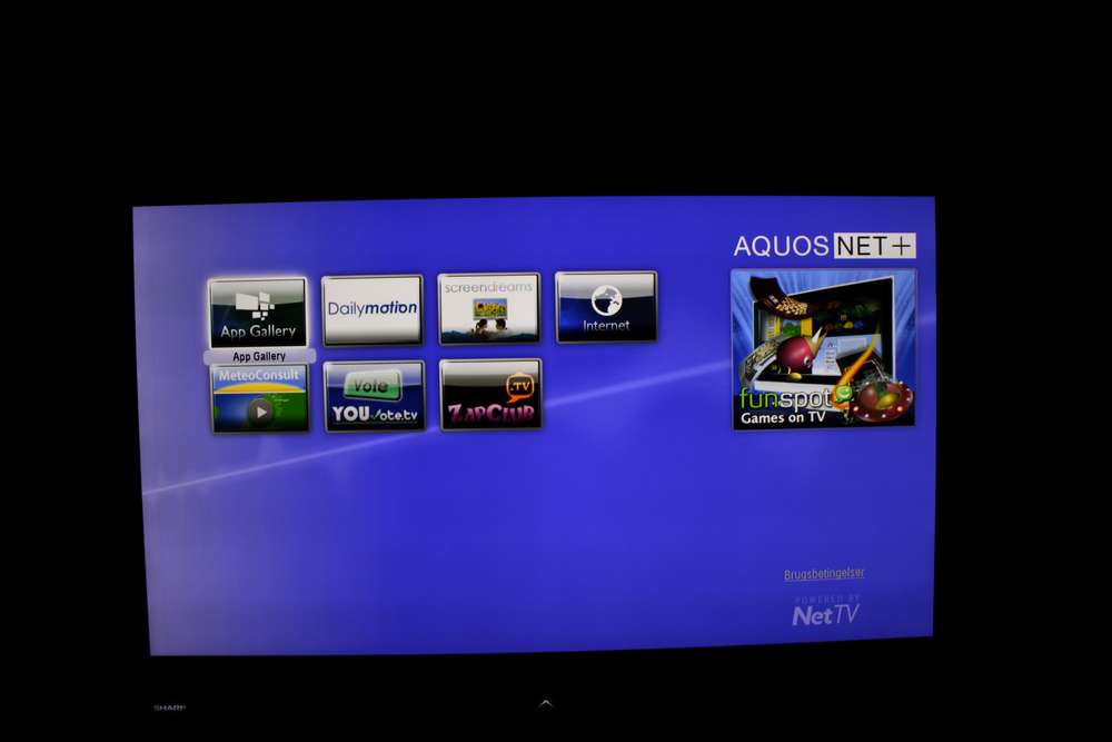 I øjeblikket er der ikke meget at vælge imellem, men Sharp fortæller, at flere tjenester vil blive tilføjet løbende. Dette kunne f.eks. være video-on-demand-tjenester, hvor man kan leje film hjemme fra sofaen.