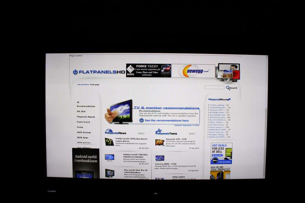 I dette afsnit vil jeg undersøge billedkvalitet med de kalibrerede indstillinger.Jeg startede med at undersøge for refleksioner i skærmens frontpanel og som du kan se på billedet herunder, har LE925 nogle markante reflektioner pga. glasfronten. Vi har set lignende resultater fra mange andre af de nye fladskærme der er blevet introduceret i 2010, herunder LG LE850N og Philips 8605H, og på dette punkt adskiller LE925 sig ikke fra LE820.