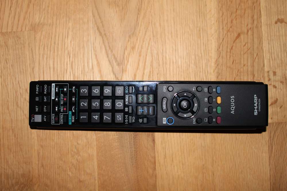 Sharp LE925 gør brug af den nyudviklede Sharp fjernbetjening, som er en klar forbedring i forhold til tidligere års fjernbetjeninger, der var meget klodsede og kedelige. Den nye har et mere elegant look, men stadig føles dog en smule for let i hånden.Fjernbetjeningen har en del knapper, og lidt for mange til min smag. Mange af kanpperne kunne have været undværet for at skabe et mere raffineret look. Der er også tilføjet et par nye knapper i forhold til LE820-modellen, herunder en NET-knap (til internet) og en 3D-knap.