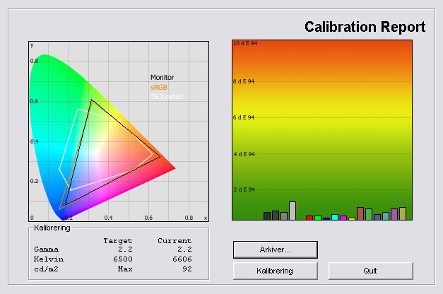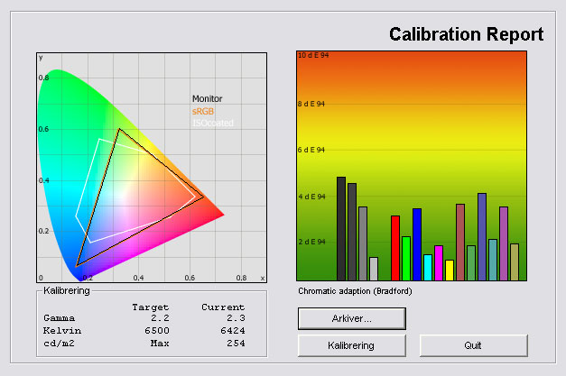 Resultatet er rigtig flot og gamma er nu stabil på 2,2. Farvetemperaturen er også meget tæt på vores 6500 Kelvin mål og lysstyrken er sænket manuelt for at give et mere behageligt all-round billede.
