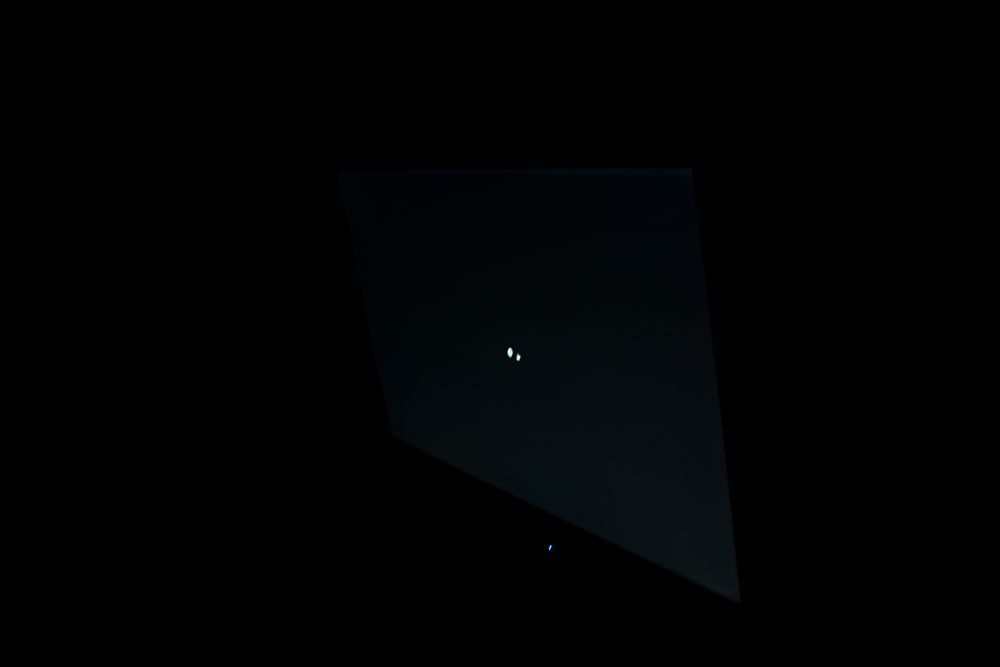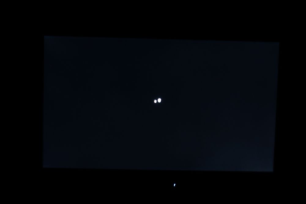 Jeg undersøgte endeligt homogeniteten af lyset på panelet i FS23331. Nedenfor kan du se et billede af skærmen i et helt mørkt rum, mens skærmen viser en sort baggrund.