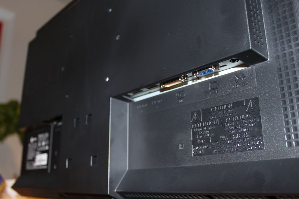 Indgangene er placeret på bagsiden. Her fandt vi 2xHDMI, DVI, D-SUB (VGA) og 1 udgang til lyd.