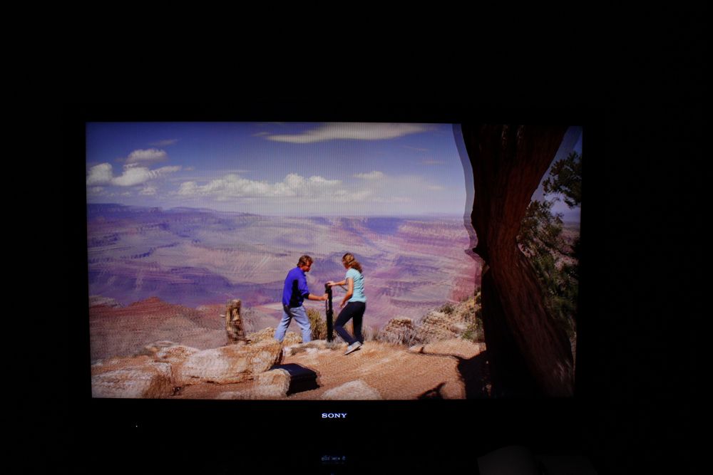 Men vi må også indskyde, at glorierne er væsentlig mere synlige fra vinkler. Bevæger man sig således ud til siden for Tv’et, kan man se glorier ret tydeligt og jeg har taget et billedet nedenfor, hvor effekten er overdrevet for forståelsens skyld.