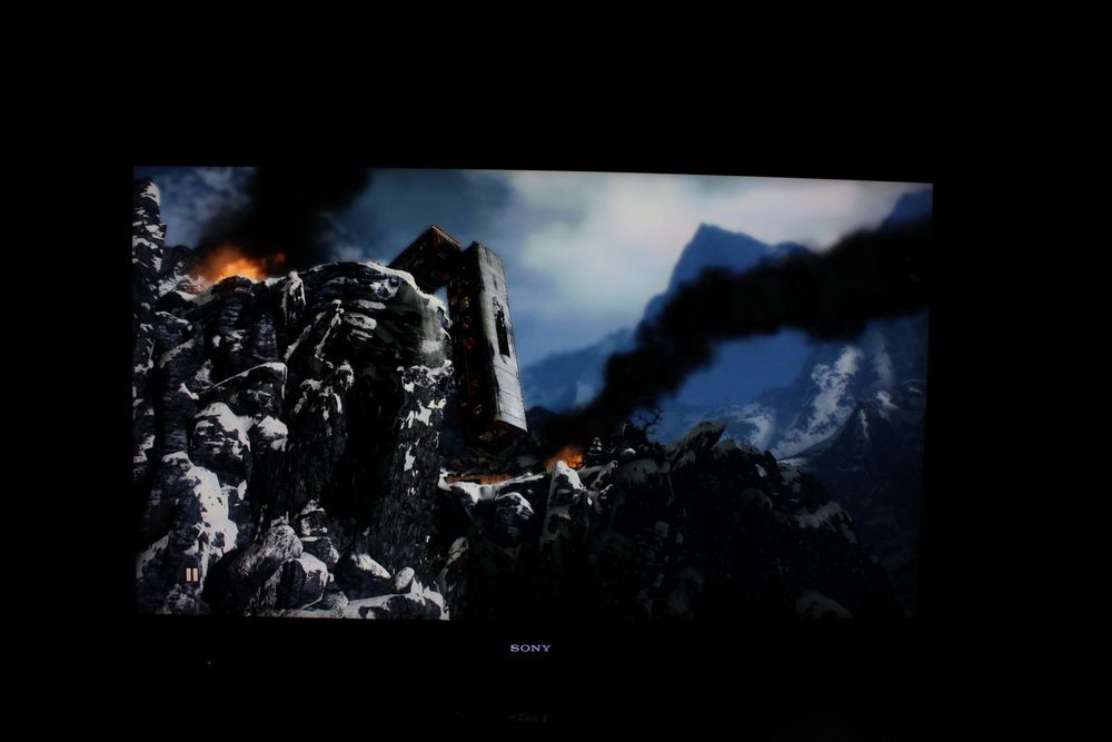 Sonys variant virker overbevisende, men LCD-panelet har imidlertid en smule overdrive trailing. Overdrive trailing er den slags slør, hvor man ser en hvid (eller enhver anden farve) glorie omkring objekter i bevægelse; f.eks. en fodboldspiller. Overdrive sløret er ikke kritisk, men jeg bemærkede det dog et par gange i PlayStation 3 spil samt i vores strestests.
