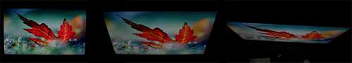 Betragtningsvinklerne på EX720 er ikke specielt brede og fra yderlige vinkler ser farverne udvasket og døde ud. Billedet er helt overordnet en del lysere fra vinkler.Dybden i den sorte farve reduceres også fra vinkler, og får en let lilla nuance. Det anbefales derfor at du sidder lige for fjernsynet for den bedste oplevelse. Se billedet nedenfor.