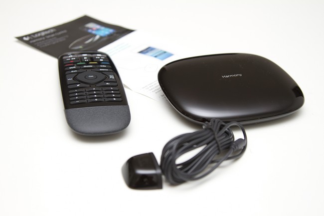 Ud over Harmony Hub får man i kassen også en simpel fysisk fjernbetjening, som er i stand til at tale med Hub'en via RF, dvs. ved tastetryk sendes der en kode til Hub'en, som så udsender det korrekte signal til dine enheder i den form for signal, som enheden har brug for - mere om det om lidt.