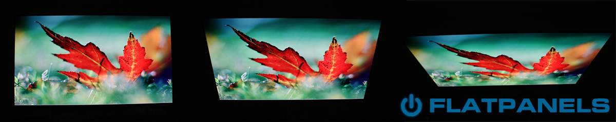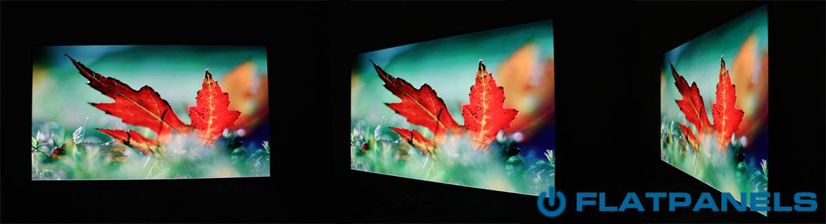 Betragtningsvinklerne opleves i praksis som bedre end på den buede variant, da tv’et ikke forvrænger billeder.Farverne fremstår stadig levende og intense fra ekstreme vinkler og der kan kun registreres et beskedent fald i farvenuancerne fra helt yderlige vinkler. Sort fremstår derimod perfekt fra alle vinkler. Betragtningsvinklerne er bedre end på alle LCD/LED-modeller uden undtagelse. Meget overbevisende.