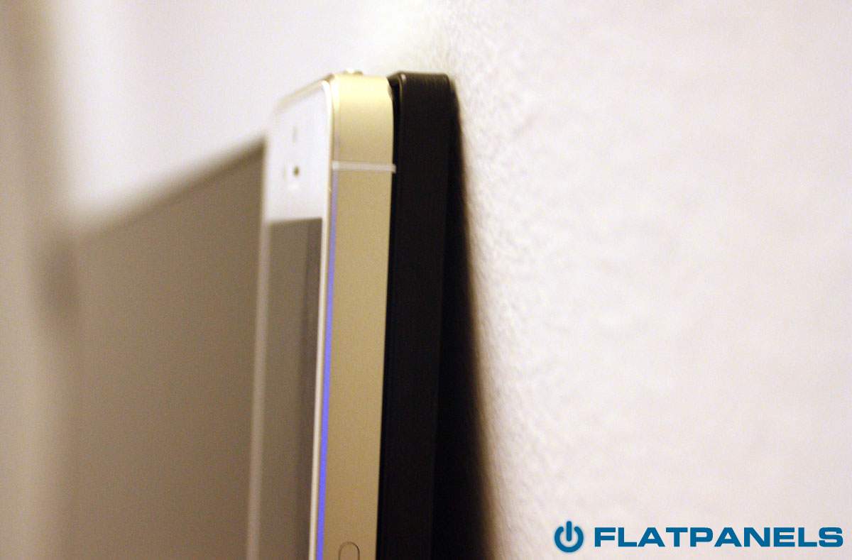 Rammen omkring skærmen er ligeledes smal, undtagen i bunden. I virkeligheden fremstår tv’et tæt på rammeløst. Det er helt simpelt i sin form og ligner blot et sort stykke glas, når det er slukket. Stikkene findes på bagsiden og peger i alle tilfælde enten nedad eller til siden, hvilket gør det problemfrit at vægmontere skærmen.