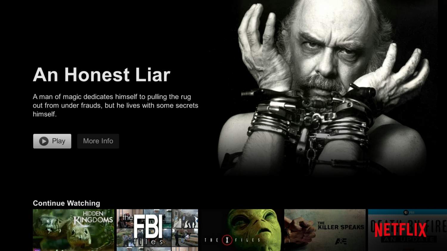 Netflix-app’en har samme brugerflade som på Smart TV og PlayStation 4, bestående af rækker med forskelligt udvalgte film og serier. App’en understøtter brugerprofiler og alle de andre velkendte Netflix-funktioner.