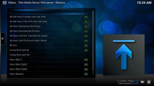 Kodi landede for nylig i Google Play butikken på Android TV. Vi noterede os dog hurtigt, at Kodi har tydelige mangler på Android TV. De har tilsyneladende valgt at frigive en betaversion til Android TV, men hvis du sideloader den normale Android-version fra en USB-fil, kører Kodi bedre. Det virker umiddelbart underligt og vi undrer os over, hvorfor Kodi har valgt at frigive en halv-færdig udgave som deres officielle version til Android TV.Uagtet, Kodi ligner fuldstændig sig selv. Standard-designet grupperer indhold i video, musik og fotos. Vi brugte samme videoklip fra tabellen længere oppe til at teste Kodi, og det fungerer generelt fint så længe man holder sig til SD, 720p og 1080p filer. Du kan også afspille HD-video med høj bitrate, men det kræver som regel en kablet forbindelse til routeren. Kodi på Android TV understøtter undertekster, IMDB integration, udvidelser, spoling osv.