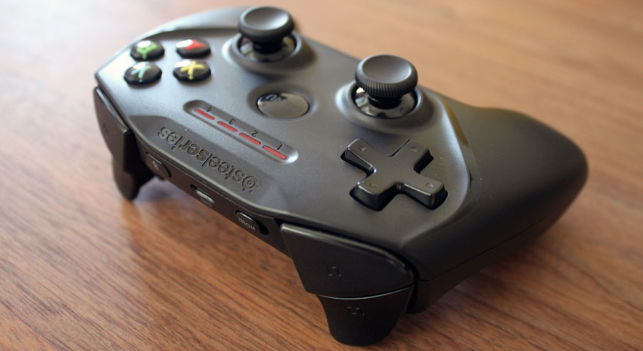 Vi har en af de første spilcontrollere til Apple TV; Steelseries Nimbus (i øvrigt dansk selskab), som er genopladelig via lightning-kablet. Den ligner i store træk Sony og Microsoft’s controllere, med et næsten identisk knap-layout, skulderknapper og svampepinde. Den har dog ikke haptisk/ryste feedback. Det er en ret god controller, der ligger godt i hånden, men den er dog ikke af samme kvalitet som Sony og Microsoft’s controllere. Den er derimod betydeligt bedre end controlleren til Nvidia Shield-spilkonsollen. Nimbus forbinder til Apple TV via Bluetooth. Du kan også bruge andre spilcontrollere, men vær opmærksom på, at de skal være "Made for iOS" for at fungere. Du kan f.eks. ikke tilslutte en Xbox-controller.