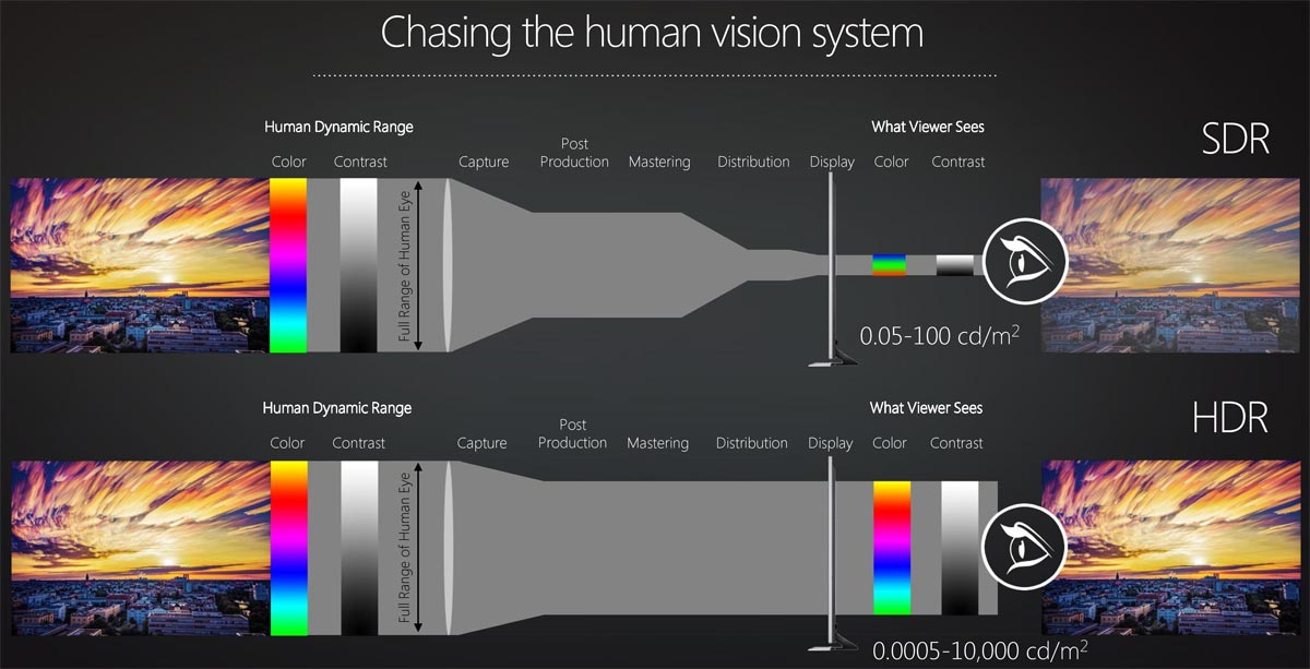 Tilsammen lægger de tre delelementer fundamentet for en ny æra indenfor billedkvalitet. Grafer som denne fra AMD demonstrerer det nok bedst. Som sagt er HDR et end-to-end-system.