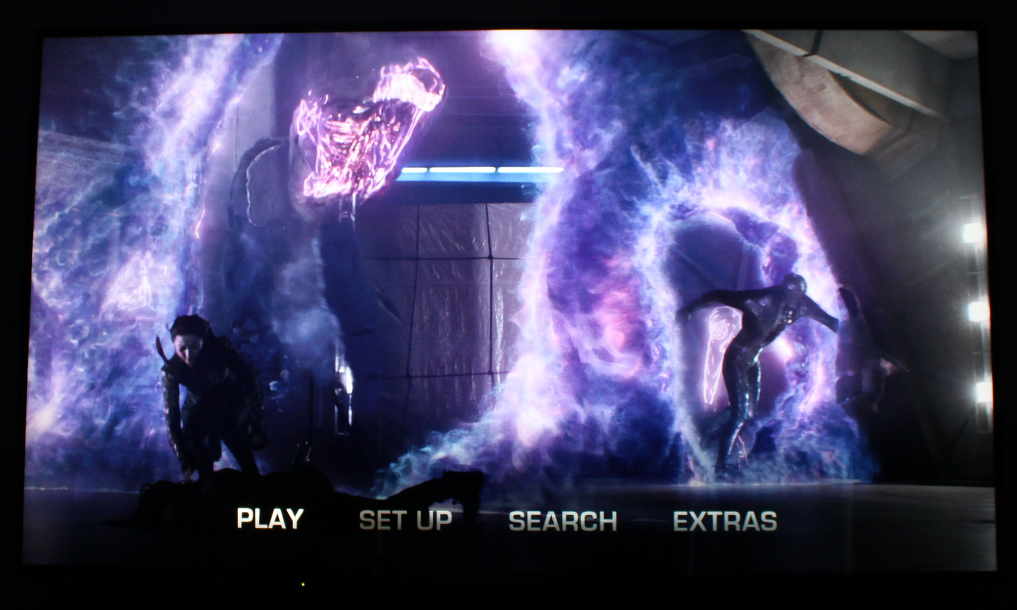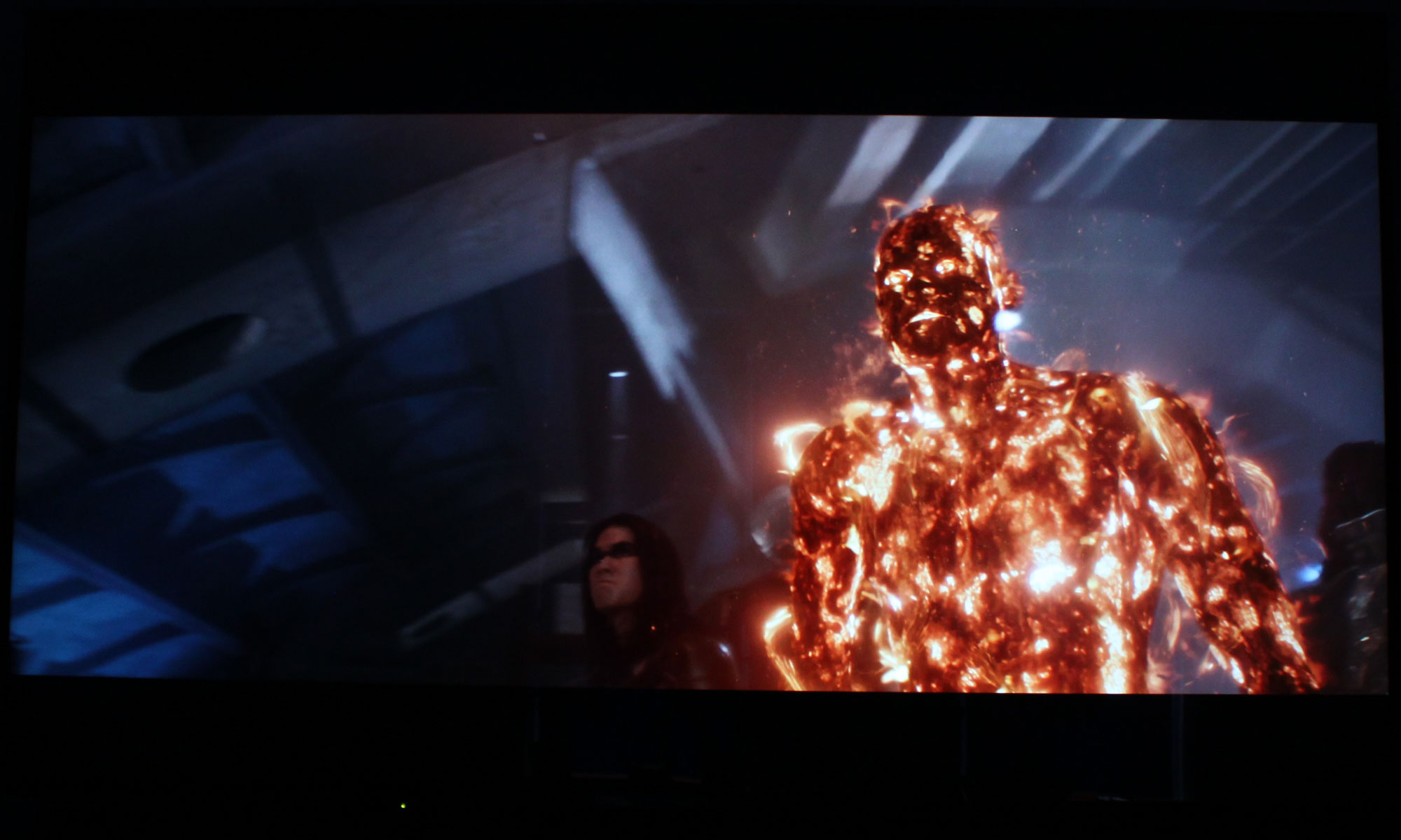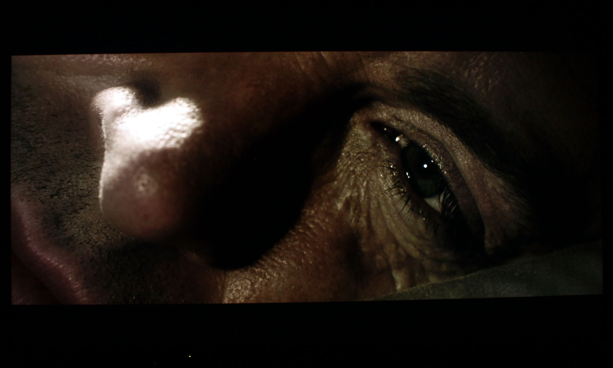 Når det er sagt, så viser DX900 dog til tider sin svaghed; nemlig at antallet af zoner simpelthen er for lavt. I en scene med en mørk nattehimmel oplyst af stjerner ser man tydelige lysglorier omkring stjerne og tekst. Det har vi fanget på billedet nedenfor, hvor du kan se glorierne omkring teksten og ovre i venste side. Stjernerne er heller ikke særlig intense og lyse, som de burde være. Her kan en LCD-skærm med zone-styring simpelthen ikke yde UHD Blu-ray-formatet retfærdighed.