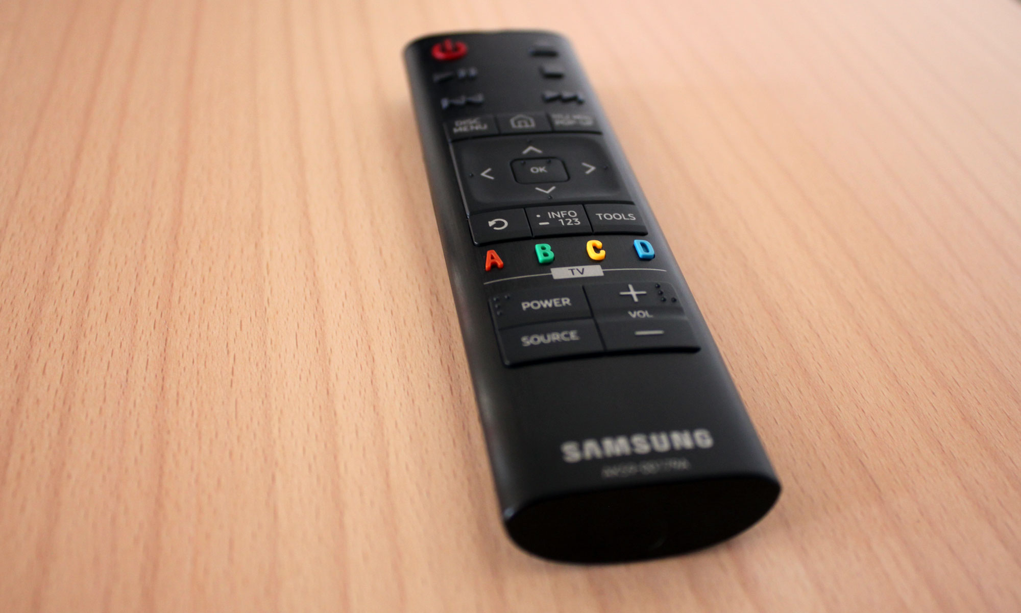 Fjernbetjeningen er en lillebitte sag med 25 knapper. De fleste heraf totalt irrelevante for en Blu-ray-afspiller. I praksis bruger du stort set kun piletasterne, OK-knappen, menu-knappen og play/pause/spole knapperne, der er placeret i toppen. Menuknapperne er desværre lidt for tæt på piletasterne, så dem rammer man ind i mellem og så ryger man altså helt ud i startmenuen. Det kan være pænt irriterende, når man egentlig gerne bare vil spole lidt i filmen.