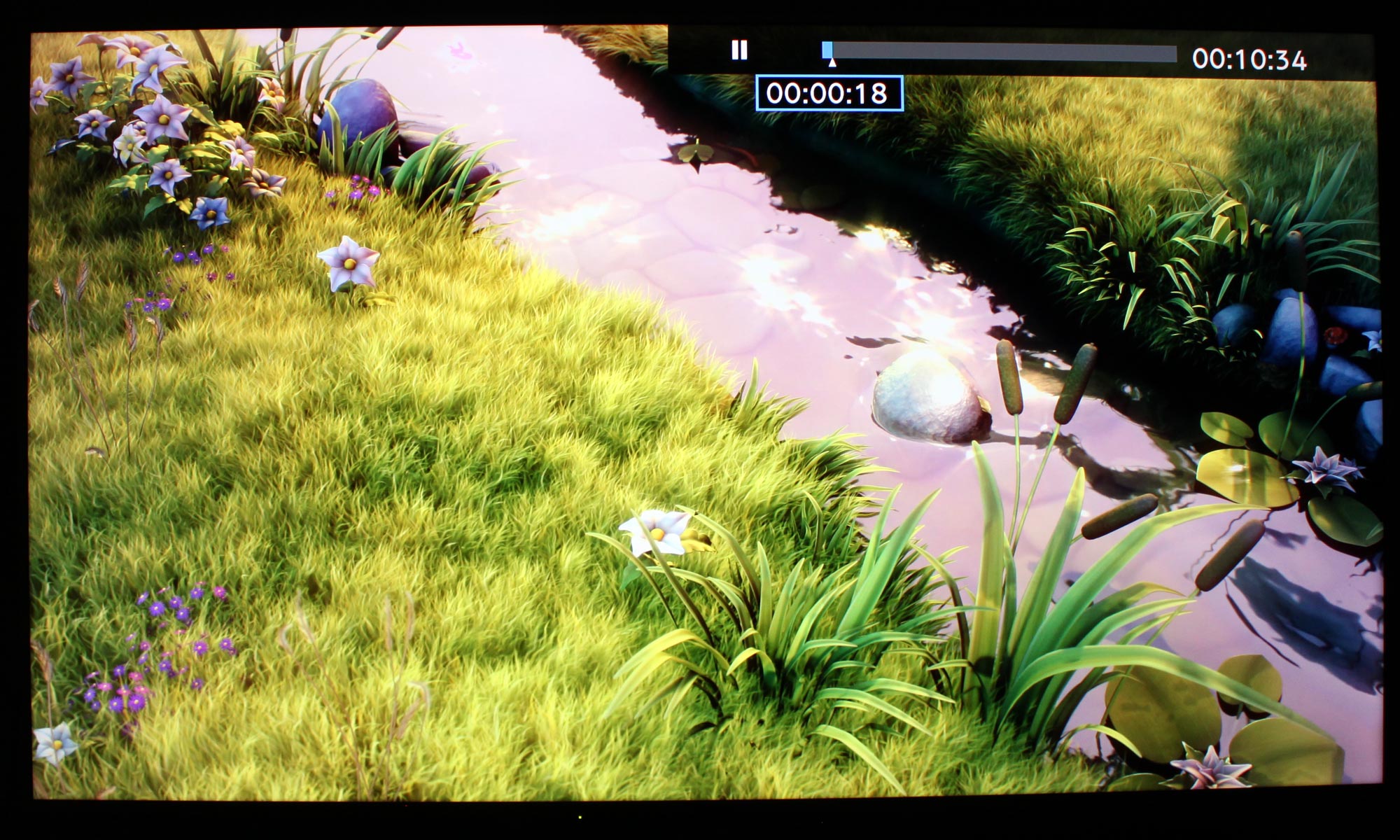 Desværre ved vi alle, at LCD-pixels ikke kan lukke lyset ude på perfekt vis, hvorfor mange mørke scener fremstår udvaskede og kontrastfattige (fordi pixels ikke kan lukke af for den kraftige bagbelysning i de mørke områder af billeder). Det er svært at fange på kamera, men kan delvist fornemmes i siderne af billedet herunder.