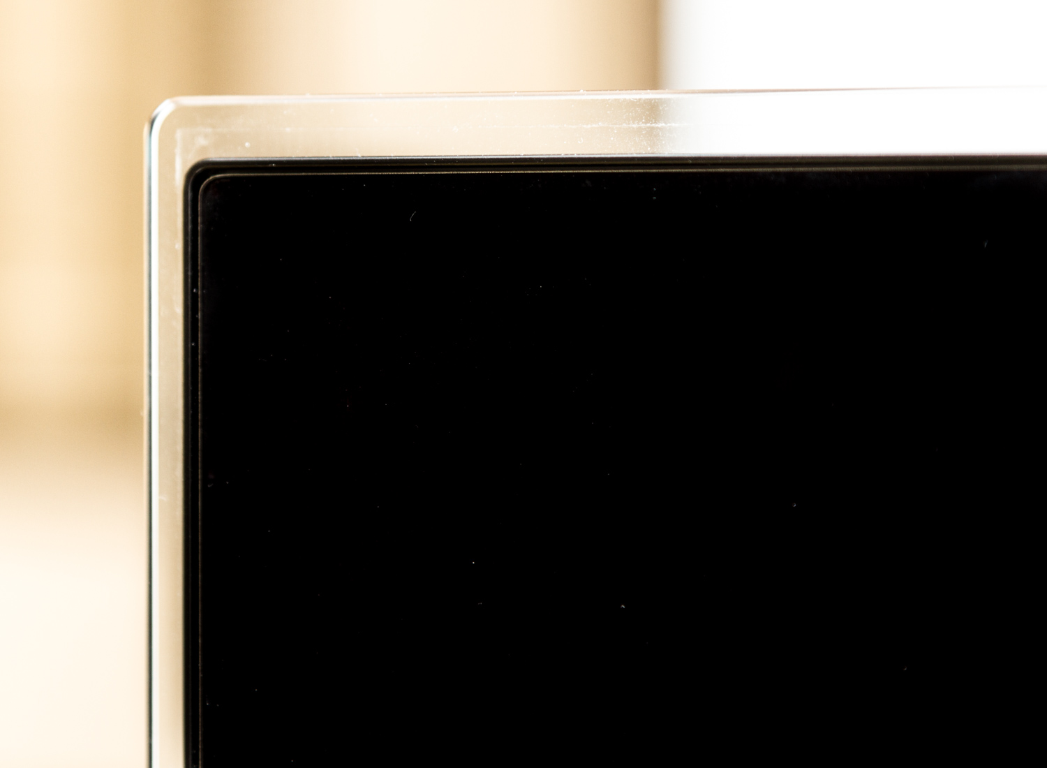 Æstetisk set er skærmen imponerende med sin tynde (og flade!) profil monteret på en stor glasplade. Den "store" højttaler i bunden har man også formået at få ganske pænt integreret med resten af skærmen, så også lyden kan få et velfortjent løft.