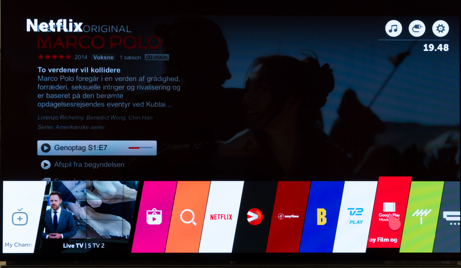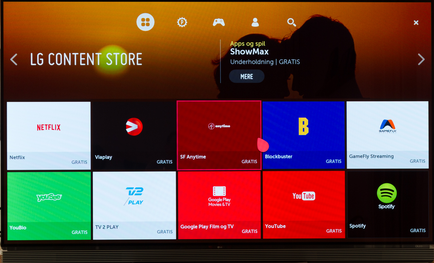 Hvis vi dykker ned i antallet af apps så er LG stadig med blandt dem der tilbyder flest danske tjenester. Vi finder eksempelvis både Yousee Play, Blockbuster, TV2 Play og Viaplay på listen, ud over de obligatoriske udlandske Netflix og Youtube. Er du Google-bruger, så vil du sikkert også glæde dig over, at Google Play Film er repræsenteret. Herfra kan du leje film. Vi mangler dog stadig tjenester som HBO Nordic og C More (selvom indholdet på Yousee Play er identisk).