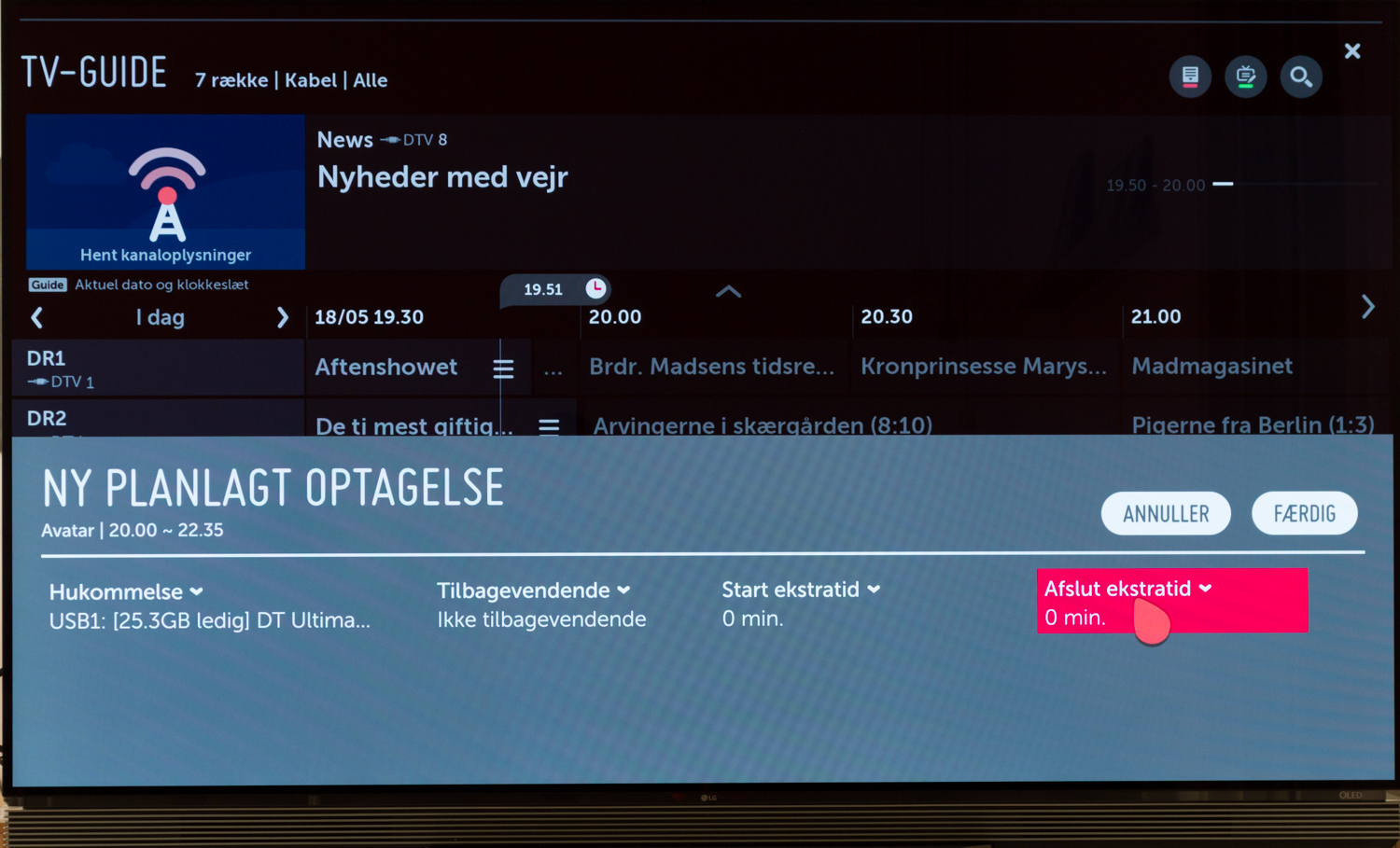 Der er mulighed for timeshift og optagelse på TV’et, men da der kun er én tuner, kan du ikke se en anden kanal imens en anden optages, hvilket virker lidt nærigt i et TV til 60.000 kr. Der er dog mulighed for at tilføje optagetid både før og efter en optagelse, hvilket gøres relativt hurtigt når en optagelse planlægges.