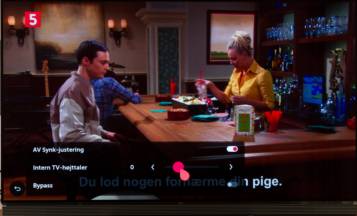 Som vi har set hidtil, tilbyder E6 forskydelse af lyden ift. billedet, og det kan stadig gøres i både positiv og negativ retning. Vi fremhæver det fordi typisk har du kun mulighed for at skrue på forsinkelsen af lyden i én retning. Det er ret unikt for et TV, at du kan gøre det begge veje.