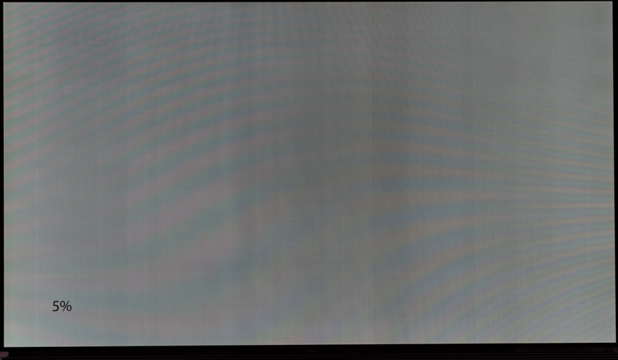 Da vi så på LG’s EG960 sidste år var der nogle issues, som gav anledning til kritik, hvor især støj og banding på helt mørke farver blev nævnt. På E6 har man stort set elimineret disse issues og på 5% sort kan man kun lige spotte nogle ganske svage mørke striber på skærmen og en anelse lyse hjørner på 2% sort (eksponeret i 4 sekunder vel og mærke!). Brugere af EG960 klagede også over gullig farvestik på hvide baggrunde og også her har LG oppet sig, så der kun ses et ganske svagt farvestik på en helt hvid baggrund. I praksis var det ikke noget der viste sig på "rigtigt" materiale. I billedserien herunder er det forsøgt at fange opførslen på ensfarvede baggrunde, men desværre har vores kombination af OLED og det benyttede kameraobjektiv en tendens til at skabe moire-mønstre, så de farvede regnbuer du kan se løbe på tværs af skærmen er kameraets skyld og ikke skærmen.