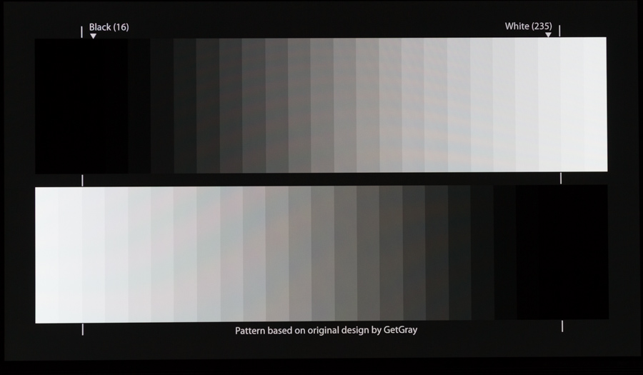 Ligesom på EG960, ser vi igen i år en anelse black crush ved standard lysstyrken og hæves denne, introduceres der støj i de sorte nuancer, så man må nok leve med at mangle de sidste trin på skalaen.