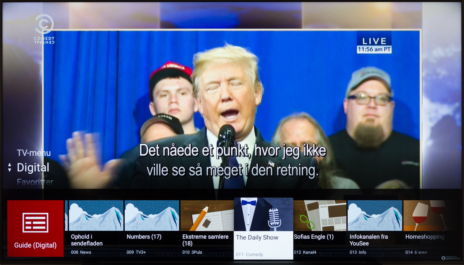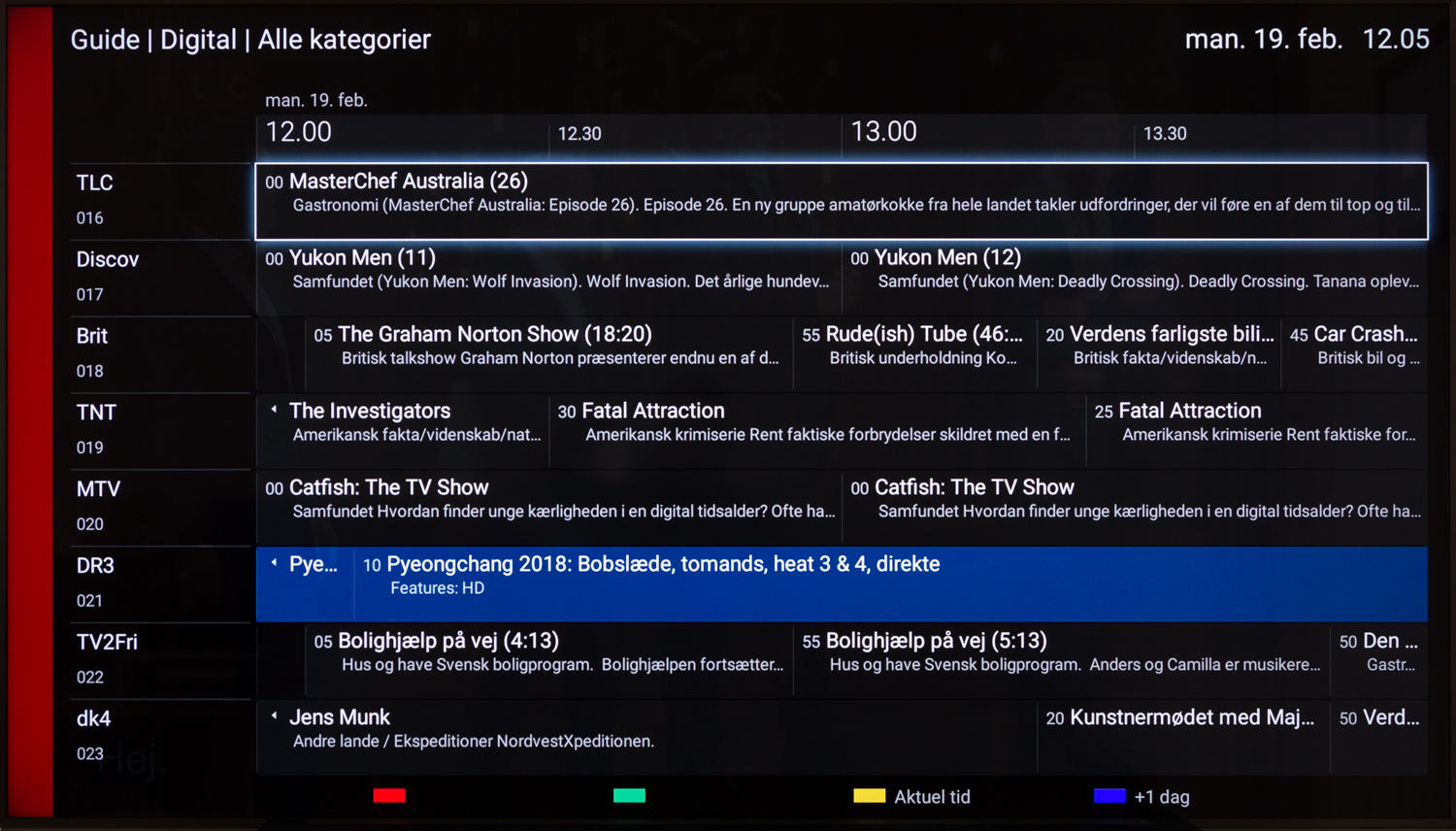 Tyngden af fjernbetjeningen har fået et nyk op, selvom bagsiden ikke er metal, og det højner kvalitetsfølelsen en smule. Selve byggekvaliteten fejler heller ikke noget, den ligger godt i hånden og taktiliteten af knapperne er godkendt. Alligevel bander jeg over fjernbetjeningen for at være så håbløst forældet og uigennemtænkt, imens den ligger der ved siden af min Apple TV remote, som efterhånden udgør 95% af mit brug.Tv-kanaler, optagelse & lyd