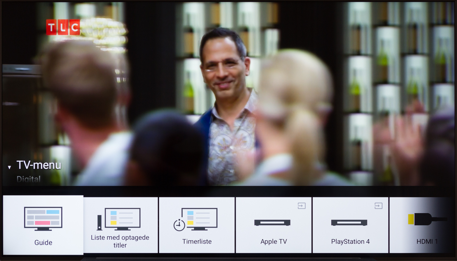 De steder man kan se en forskel på XF90 er i den menu, som Sony før kaldte “Discover”, men som nu er blevet henvist som en dobbeltfunktion på “TV”-knappen. I menuen findes der nu - ud over de sædvanlige genveje til TV-kanaler og brugervalgte apps - genveje til timeroptagelser, TV-guide og tilsluttet HDMI-udstyr. Menuen begynder dermed mere at ligne de versioner, som både LG og Samsung benytter i deres styresystem, men dog med en langt mindre central placering. Det kan virke en smule sært, at der både skal være en “home”-menu med genveje til inputs, apps mv. og så en bundmenu, hvor det meste af det samme nu også kan findes. Endnu mere sært virker det dog, at man skal bruge TV-knappen til at aktivere menuen med inputs i, så du reelt ikke kan benytte den uden at befinde dig i TV-interfacet. Input-listen findes dog også i Home-menuen og for at det ikke skal være løgn, så har de også en dedikeret knap på fjernbetjeningen...
