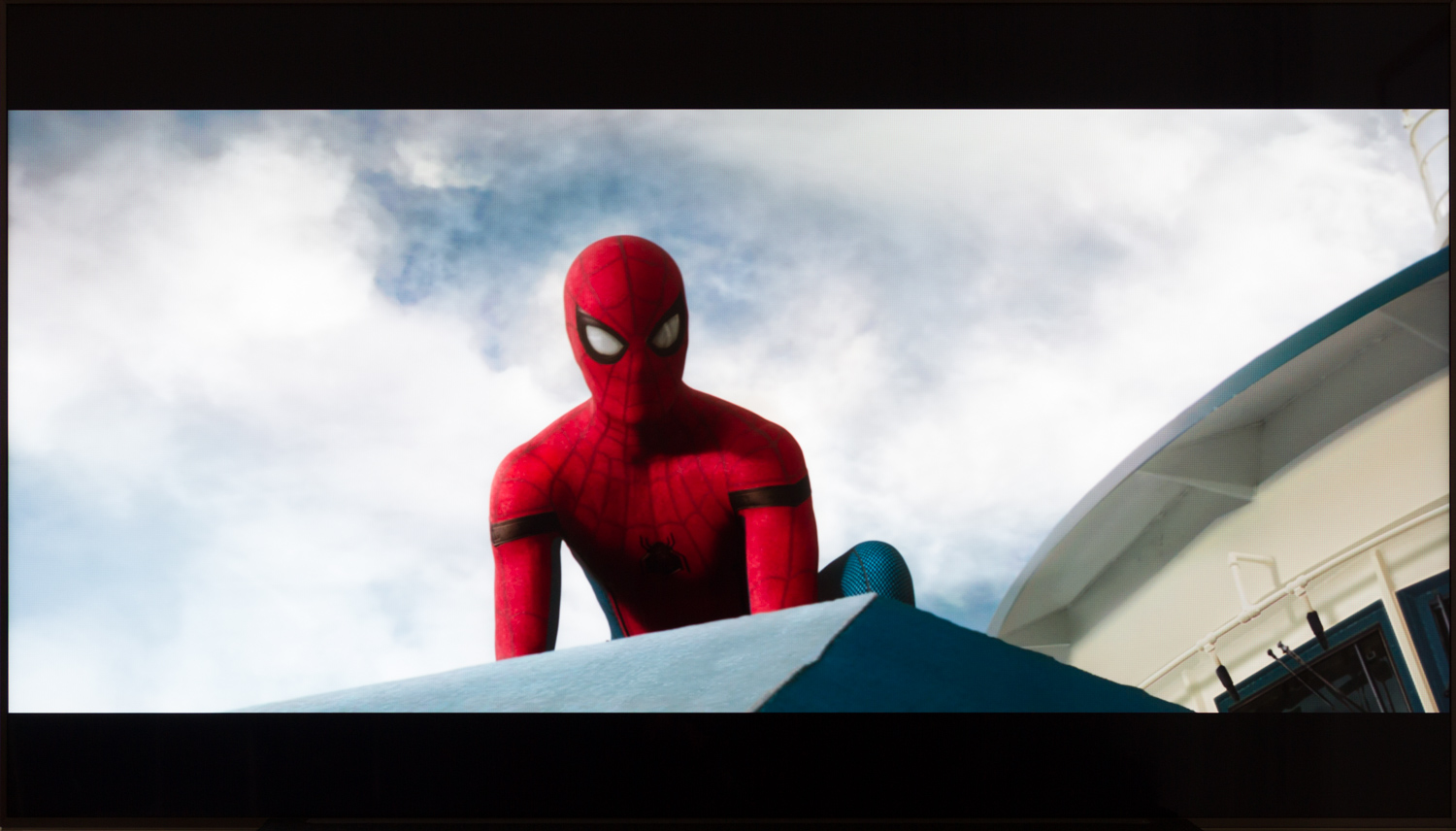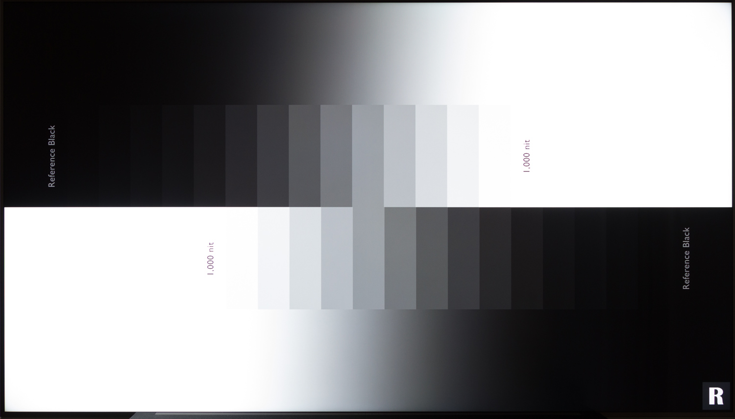 På billedet herunder ses det hvordan sortniveauets forværres når man bevæger sig væk fra midten og her er det tydeligt, at billedkvaliteten lider et dyk på et LCD-TV. Man skal faktisk ikke mere end ganske få grader væk fra midten før blooming omkring lysende elementer bliver synlige, og de famøse oplyste sorte bjælker vil begynde at slå lidt skår i glæden ved et ellers ret godt billede. Det er ikke sikkert det er en dealbreaker - og det er på ingen måde unikt for Sony - men i disse HDR-tider, så er det helt klart værd at notere sig, at oplevelsen er mest optimal midt for skærmen.