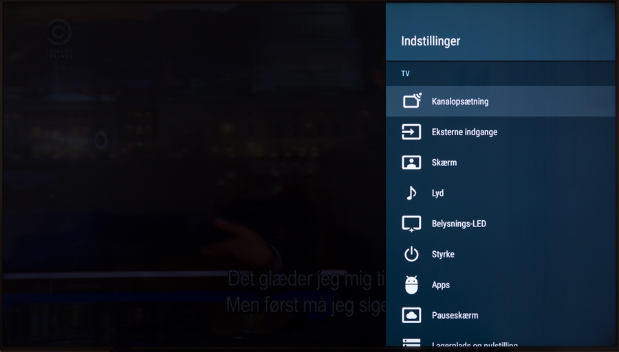 Indstillingsmenuen på Android TV er også ændret en smule, og hvor den før overtog hele skærmbilledet, så er den nu flyttet ud som en sidemenu. Du slipper dog ikke for stadig at skulle rode i Sonys egne indstillingsmenuer, som på vanlig vis kan hidkaldes på flere forskellige måder via enten Androids indstillinger, men også til dels via Sonys “Action menu”, som stadig sidder i toppen af skærmen. Det er dermed samme rodede affære, som de øvrige Android-baserede TV må døjes med og man føler aldrig helt, at synergien mellem TV-interface og Android er 100% perfekt.