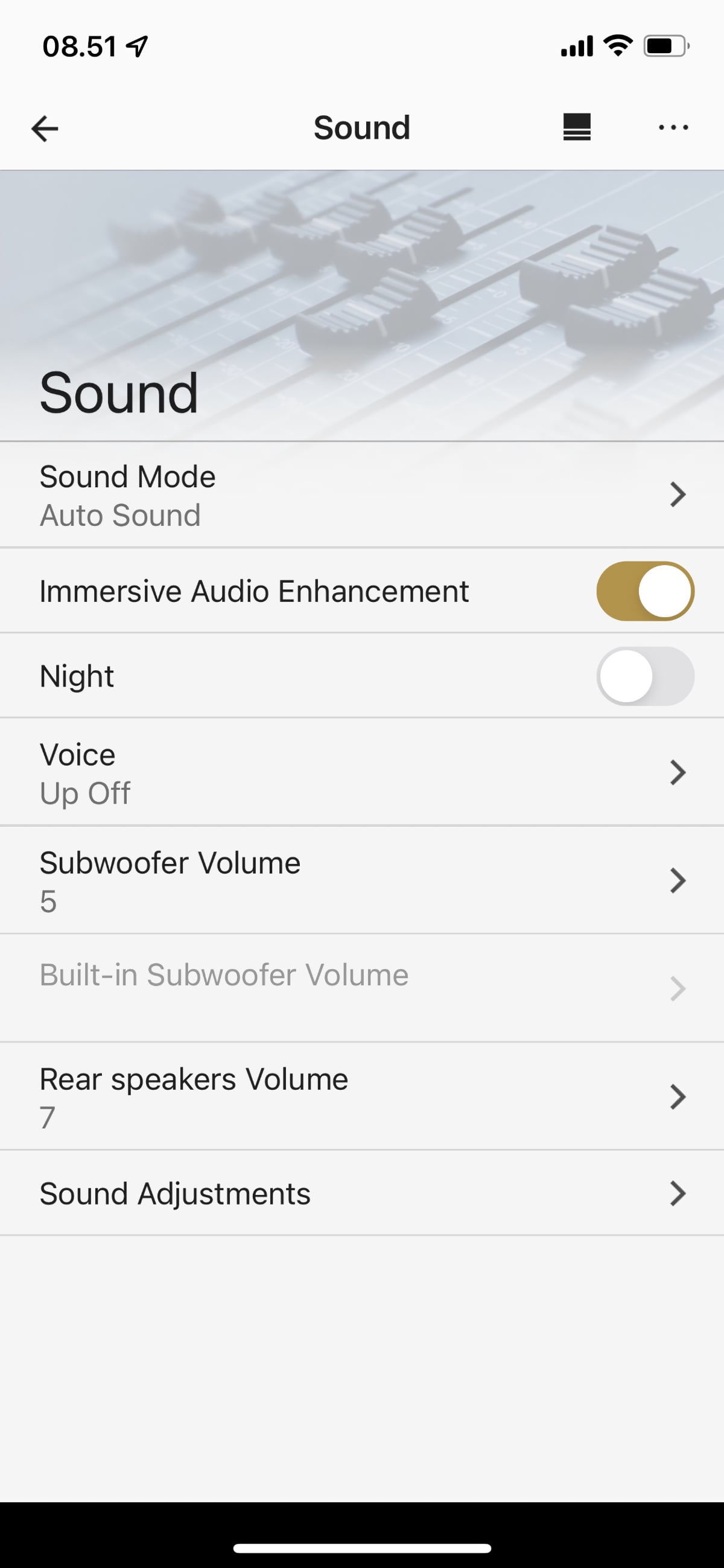 Med den tilkobling af vejen er man egentlig klar til at fortælle TV’et, at lyden skal komme fra et tilkoblet anlæg, men når nu muligheden for rumkalibrering er til stede er det næsten ærgerligt ikke at gøre brug af det. Der medfølger ikke en målemikrofon, som til Sennheiser Ambeo, og A7000 benytter hverken fjernbetjening eller telefon til opsnapning af lyd, som eksempelvis Sonos eller Sonys egne TV gør. Det betyder, at rumkorrektion ikke helt matches din siddeposition, men derimod foregår mere som en aflæsning af hele rummet og en korrektion af dette set fra højttalerens position. Der er ikke nogen equalizer at kunne justere på efterfølgende, så ud over at kunne skrue på den generelle volumen, så kan der justeres for bas og bagkanalernes volumen via fjernbetjeningen (eller app’en), men yderligere fintuning skal ske ved at vælge mellem de lyd-profiler, der findes.