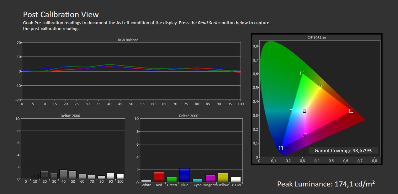 At få indstillet sit TV, så billedet matcher filmskaberens intention burde være hvad TV-producenten altid stræbte efter, men uheldigvis sælger denne billedgengivelse ikke ret mange TV ude i butikkerne, og billedet vil sandsynligvis ikke imponere mange ved første øjekast. Derfor har de fleste producenter et virvar af billedprofiler, som er pumpet op i forskellige grader af kunstighed i form af skarphed, overmættede farver og skæv kontrast. Philips har omtrent perfektioneret dét at gøre et billede ekstra skarpt med farver, der næsten gør dig blind, og OLED807 er bestemt ikke glemt når det kommer til brug af hele paletten af muligheder for at tilføre "lidt ekstra".Det er vanen tro alt for mange billedprofiler at vælge mellem for den almene bruger, og det ville virkelig klæde samtlige producenter at få ryddet lidt op. Der er kan ikke være nogen derude, som har behov for at vælge mellem så mange (marginalt) forskellige profiler. Puristen har nærmest kun brug for én og det er den korrekt kalibrerede, og så kan man argumentere for, at en spilprofil måske også er anvendelig, men med ALLM-funktionalitet kunne der sagtens tænkes en all-in-one løsning, som blot slog yderligere billedkredsløb fra for at reducere input-lag. Vi tager udgangspunkt i Expert-profilen - samme type profil kan hedde noget lidt andet hos andre producenter, men der findes generelt én, som kommer ret tæt på målet. Philips har lagt adskillige "gode" profiler i kataloget heriblandt Filmmaker Mode og en Calman-profil, hvis man foretager en autokalibrering. Manuel kalibrering er forholdsvis enkel, som det også er tilfældet på andre OLED, og man kommer hurtigt meget tæt på referencen med få justeringer. Justering af lysstyrken hos Philips foregår, ligesom hos Sony, i flere trin, hvor ét er at definere det maksimale lysniveau. Uheldigvis deles denne indstilling på tværs af SDR og HDR10, så indstiller man lysstyrken fornuftigt til SDR, så vil billedet være alt for mørkt til HDR. Det anbefales derfor at benytte hhv. Expert 1 og 2 til hhv. SDR og HDR10 og lade eneste forskel være indstillingen for maksimal lysstyrke (Light Boost). Dolby Vision har sine egne profiler og lider dermed ikke af samme problem. Philips har et af de såkaldte OLED EX-paneler fra LG, som skulle være i stand til at levere op til 30% højere lysstyrke, men for at nå over 1000 nits på OLED807 er man desværre nødt til at benytte en af de dynamiske billedprofiler, hvilket er ødelæggende for oplevelsen. Det er muligt at levere højere lysstyrke i disse fordi farvetemperaturen på hvid er markant højere (mere blålig). I Expert-profilen lander peak-lysstyrken på mere moderate 740 nits. Da der er tale om et WOLED-panel fra LG, så er farverummet ikke nær så bredt som på eksempelvis Sony A95K eller Samsung S95B, som benytter Samsungs QD-OLED-panel. Vi måler samme dækning, som øvrige paneler baseret på denne paneltype, nemlig x% af DCI-P3 og xx% af Rec.2020 farverummene.Øvrige billedprofiler